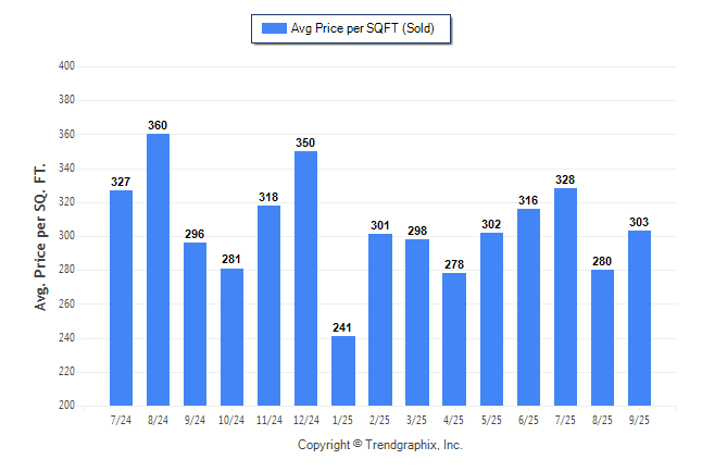 September 2025 Average Sold Price per Square Footage was Neutral**