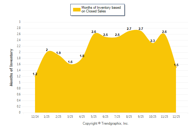 Curnt vs. Same Month 1 Yr Ago: Months of Inventory (Closed Sales)