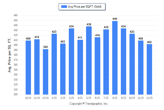 December 2025 Average Sold Price per Square Footage was Depreciating**