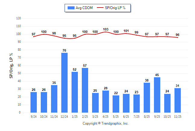 November 2025 Average Continuous Days on Market trend Remains Steady and Sold/Original List Price Ratio was Falling**