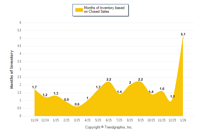 Curnt vs. Same Month 1 Yr Ago: Months of Inventory (Closed Sales)