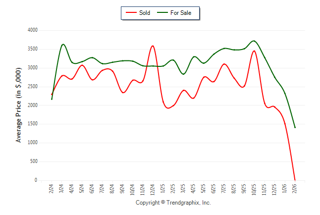 February 2026 Average For Sale Price was Depreciating and Average Sold Price was Depreciating**