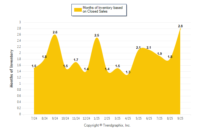 Curnt vs. Same Month 1 Yr Ago: Months of Inventory (Closed Sales)