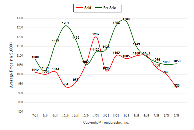 September 2025 Average For Sale Price was Neutral and Average Sold Price was Depreciating**