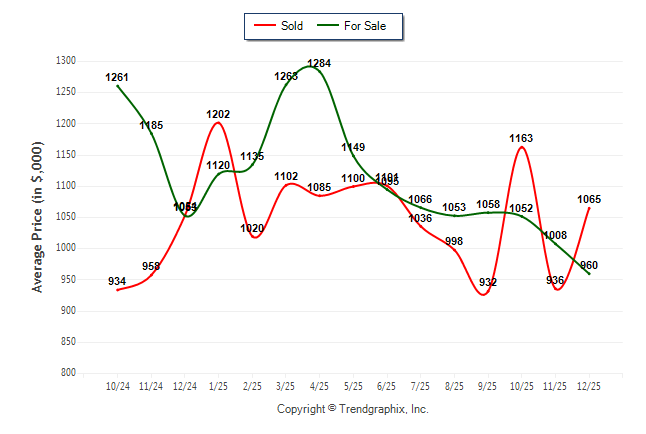 December 2025 Average For Sale Price was Depreciating and Average Sold Price was Neutral**
