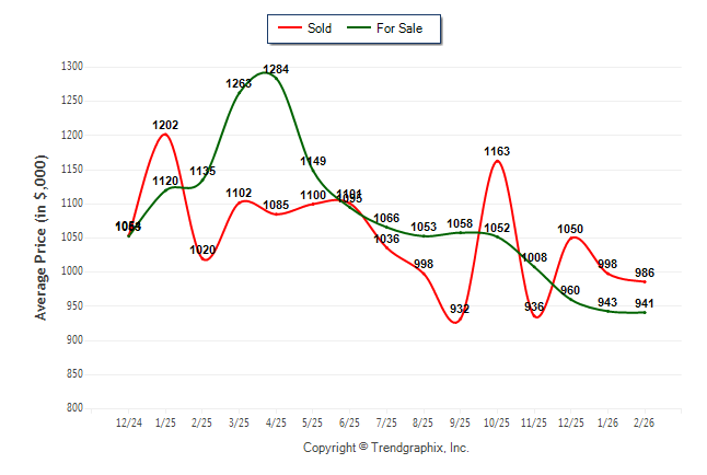 February 2026 Average For Sale Price was Depreciating and Average Sold Price was Neutral**