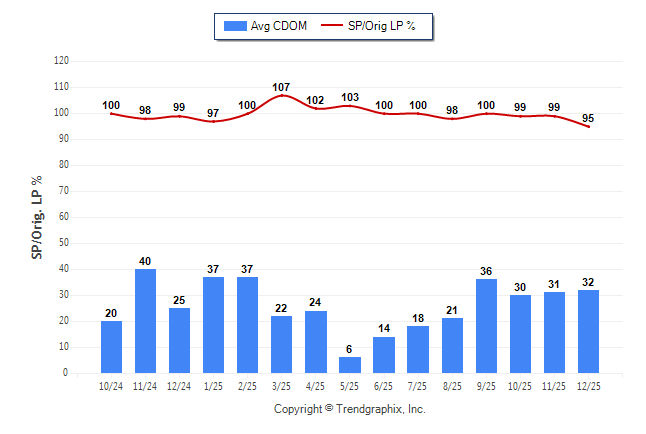 December 2025 Average Continuous Days on Market trend was Rising and Sold/Original List Price Ratio was Falling**