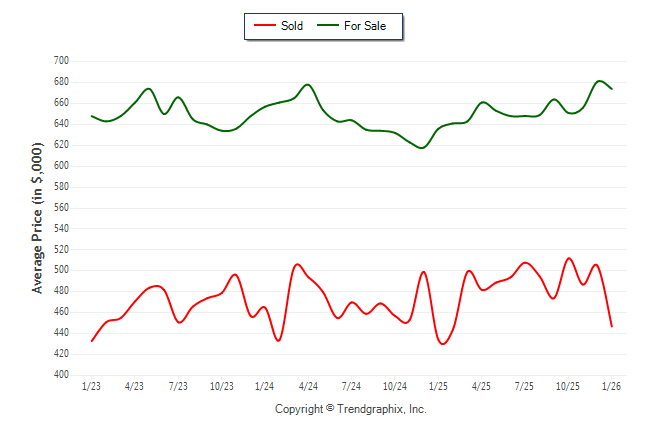 January 2026 Average For Sale Price was Neutral and Average Sold Price was Depreciating**