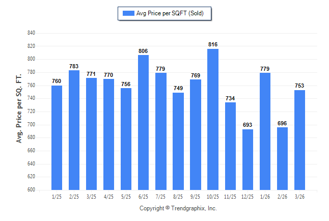 March 2026 Average Sold Price per Square Footage was Neutral**