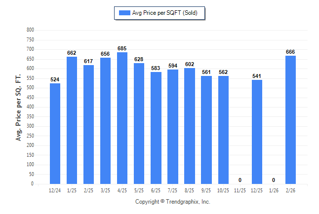 February 2026 Average Sold Price per Square Footage was Appreciating**