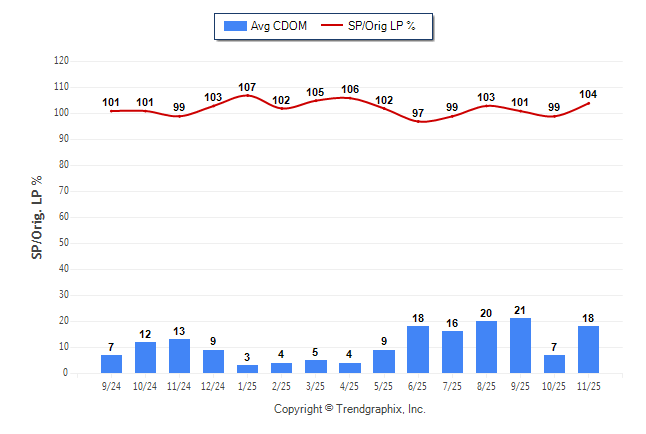 November 2025 Average Continuous Days on Market trend Remains Steady and Sold/Original List Price Ratio was Rising**