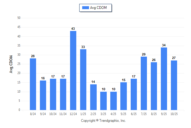 October 2025 Average Continuous Days on Market trend Remains Steady**