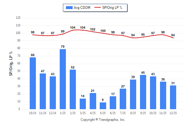 December 2025 Average Continuous Days on Market trend Remains Steady and Sold/Original List Price Ratio Remains Steady**