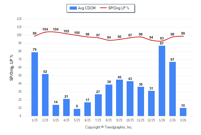 March 2026 Average Continuous Days on Market trend Remains Steady and Sold/Original List Price Ratio was Rising**