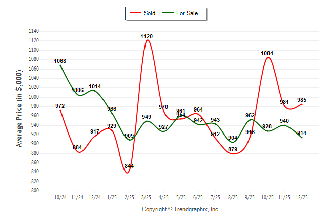December 2025 Average For Sale Price was Depreciating and Average Sold Price was Neutral**
