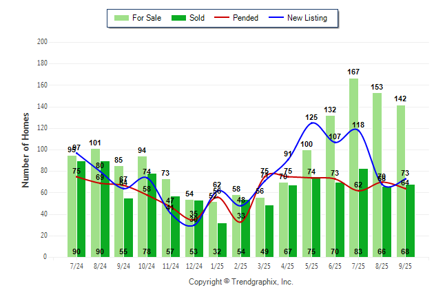 Curnt vs. Same Month 1 Yr Ago: For Sale up67.1% | New Listing up14.1% | Sold up23.6% | Pended down-4.5%