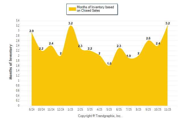 Curnt vs. Same Month 1 Yr Ago: Months of Inventory (Closed Sales)