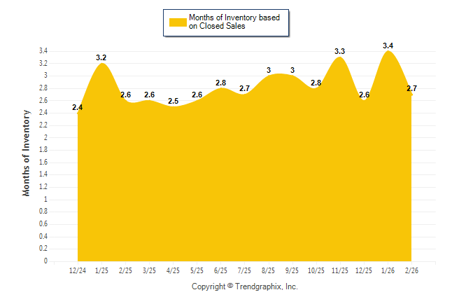 Curnt vs. Same Month 1 Yr Ago: Months of Inventory (Closed Sales)