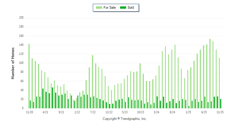 Curnt vs. Same Month 5 Yrs Ago: For Sale down-21.7% | Sold up16.7%