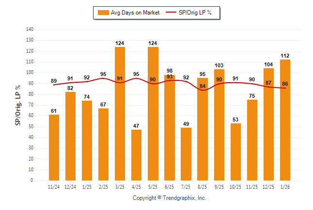 Curnt vs. Same Month 1 Yr Ago: Avg Days on Market up51.4% | Sold/Orig LP Diff. % down-6.5%
