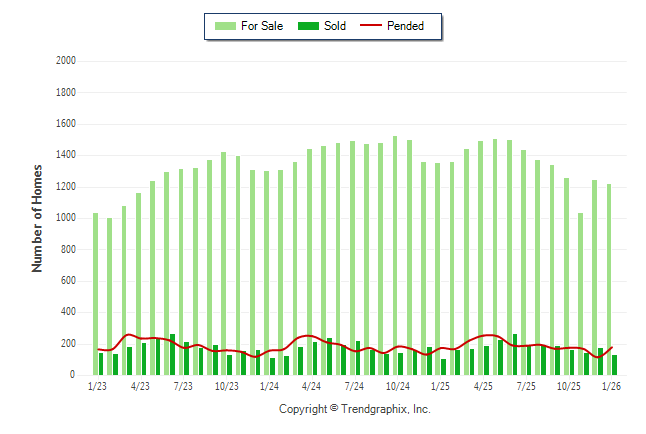 Curnt vs. Same 12 Months 1 Yr Ago: For Sale down-9.9% | Sold up6.4% | Pended up3.9%