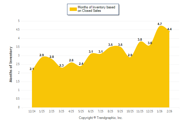 Curnt vs. Same Month 1 Yr Ago: Months of Inventory (Closed Sales)