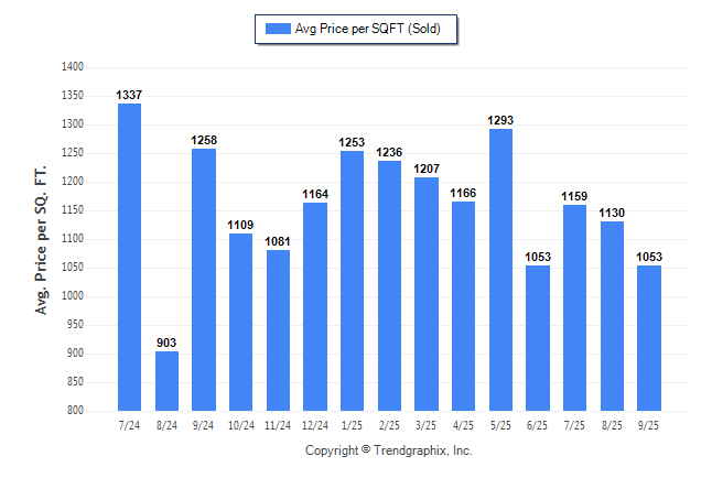 Curnt vs. Same Month 1 Yr Ago: Avg. Sq. Ft. Price (Sold)