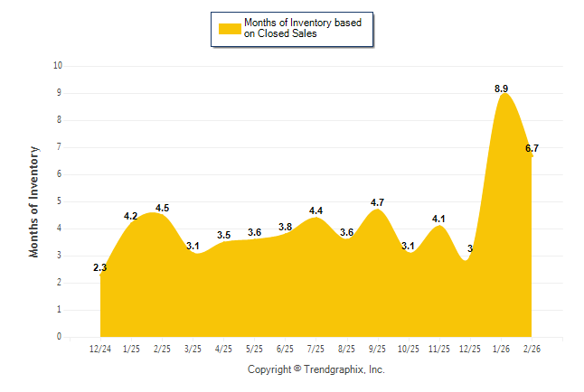 Curnt vs. Same Month 1 Yr Ago: Months of Inventory (Closed Sales)