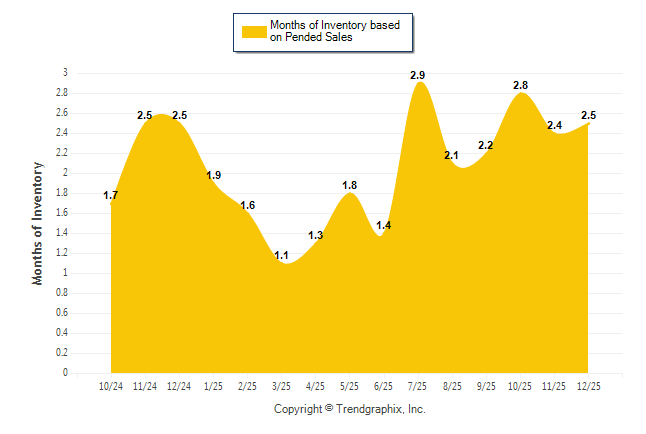 Curnt vs. Same Month 1 Yr Ago: Months of Inventory (Pended Sales) 0%