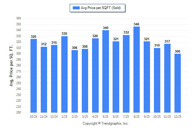 Curnt vs. Same Month 1 Yr Ago: Avg. Sq. Ft. Price (Sold) down-4.8%