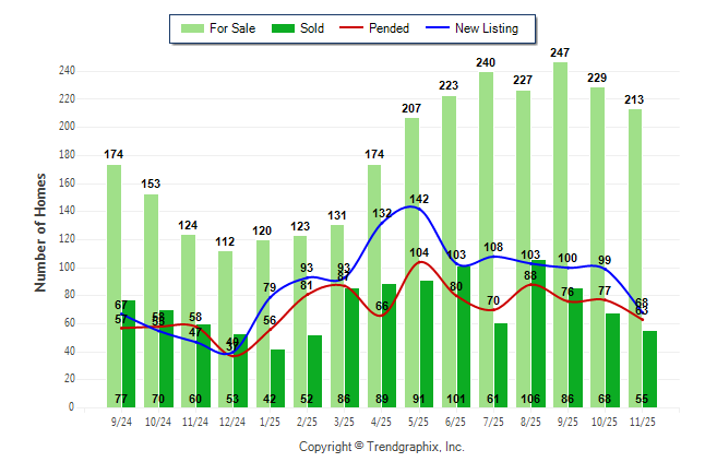 Curnt vs. Same Month 1 Yr Ago: For Sale up71.8% | New Listing up44.7% | Sold down-8.3% | Pended up8.6%