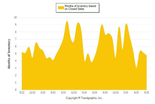Curnt vs. Same 12 Months 1 Yr Ago: Months of Inventory (Closed Sales) down-20.9%
