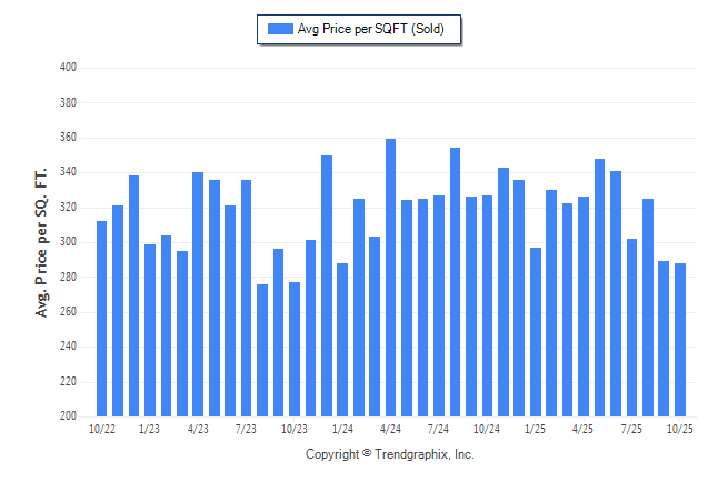 Curnt vs. Same 12 Months 1 Yr Ago: Avg. Sq. Ft. Price (Sold) down0.9%