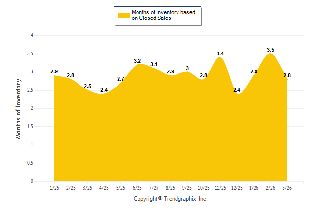 Curnt vs. Same Month 1 Yr Ago: Months of Inventory (Closed Sales)