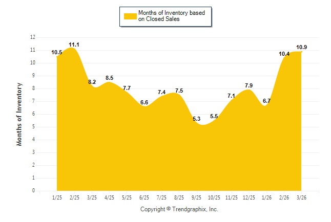 Curnt vs. Same Month 1 Yr Ago: Months of Inventory (Closed Sales)