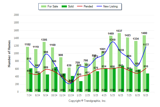 Curnt vs. Prev Month: For Sale up10.9% | New Listing up72.1% | Sold down-17.3% | Pended up25.7%