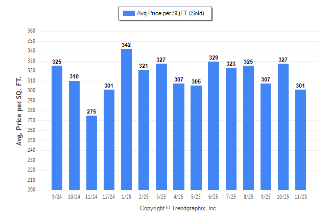 Curnt vs. Same Month 1 Yr Ago: Avg. Sq. Ft. Price (Sold)