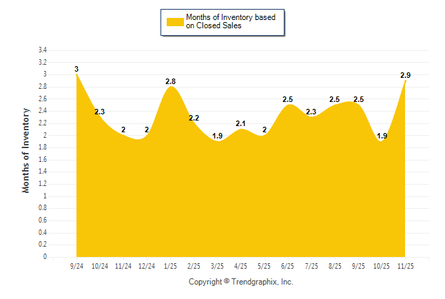 Curnt vs. Same Month 1 Yr Ago: Months of Inventory (Closed Sales) up45.5%