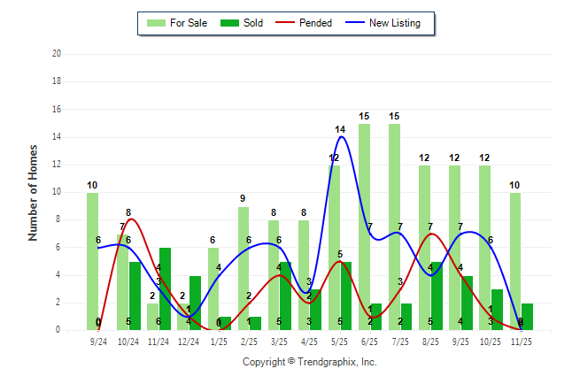 Curnt vs. Prev Month: For Sale down-16.7% | New Listing down-100% | Sold down-33.3% | Pended down-100%