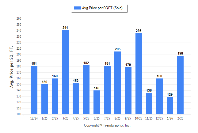 Curnt vs. Same Month 1 Yr Ago: Avg. Sq. Ft. Price (Sold) up23.8%