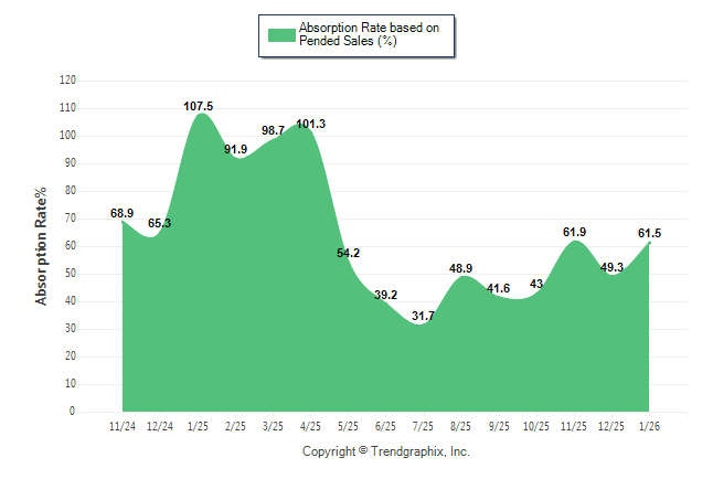 Curnt vs. Same Month 1 Yr Ago: Absorption Rate (Pended Sales) % down-42.8%