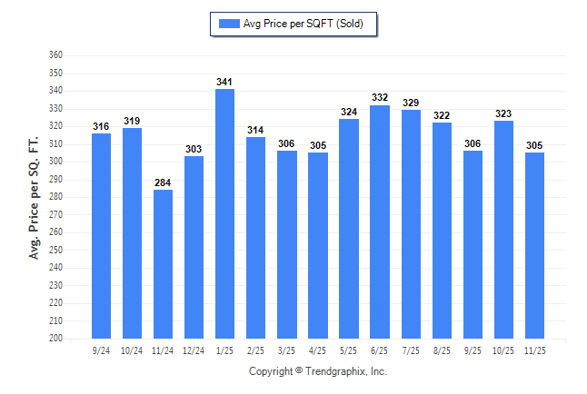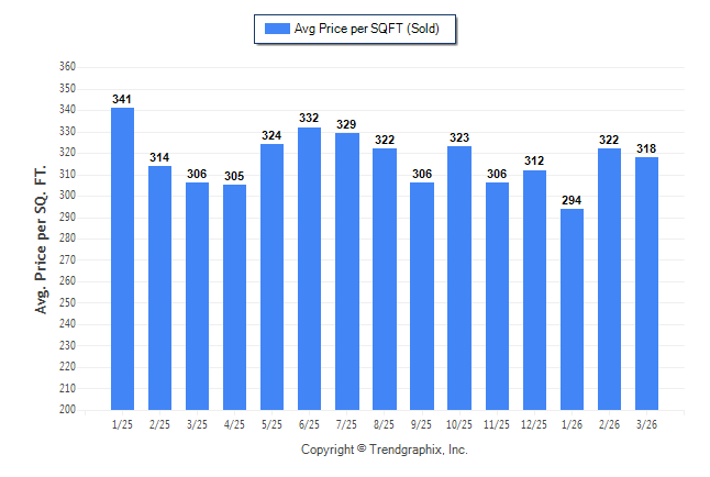 Curnt vs. Same Month 1 Yr Ago: Avg. Sq. Ft. Price (Sold)