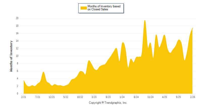Curnt vs. Same Month 4 Yrs Ago: Months of Inventory (Closed Sales) up705.5%