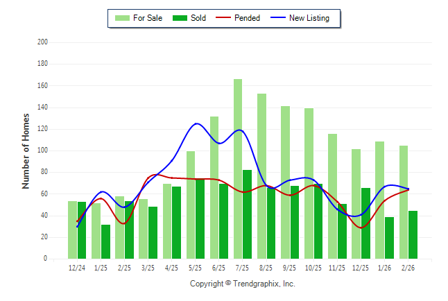 Curnt vs. Prev Month: For Sale down-3.7% | New Listing down-3% | Sold up15.4% | Pended up18.5%