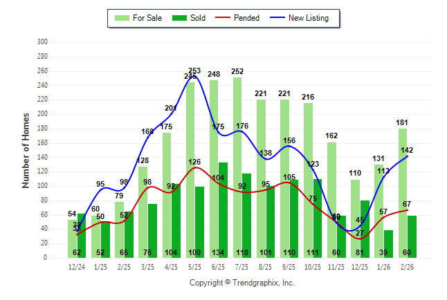 Curnt vs. Prev Month: For Sale up38.2% | New Listing up25.7% | Sold up53.8% | Pended up17.5%