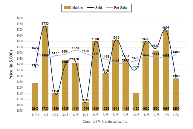 February 2026 Median Price was Neutral, Avg. For Sale Price was Appreciating, and Avg. Sold Price was Neutral**
