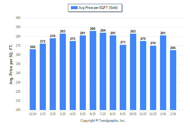 February 2026 Average Sold Price per Square Footage was Depreciating**