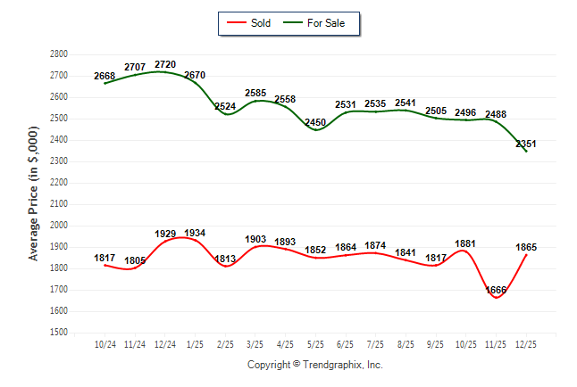 December 2025 Average For Sale Price was Depreciating and Average Sold Price was Neutral**