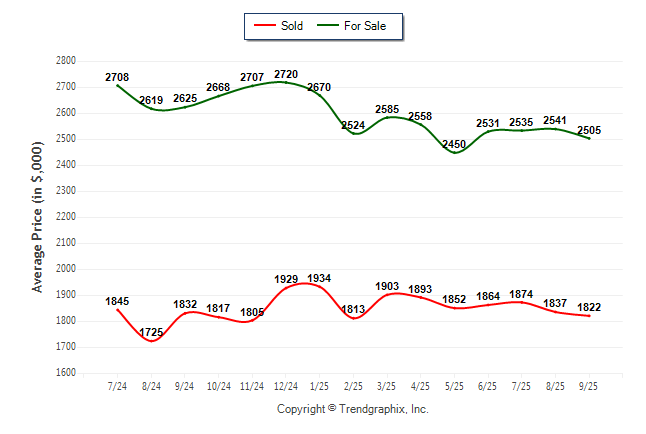 September 2025 Average For Sale Price was Neutral and Average Sold Price was Depreciating**
