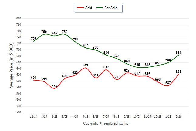 February 2026 Average For Sale Price was Appreciating and Average Sold Price was Neutral**